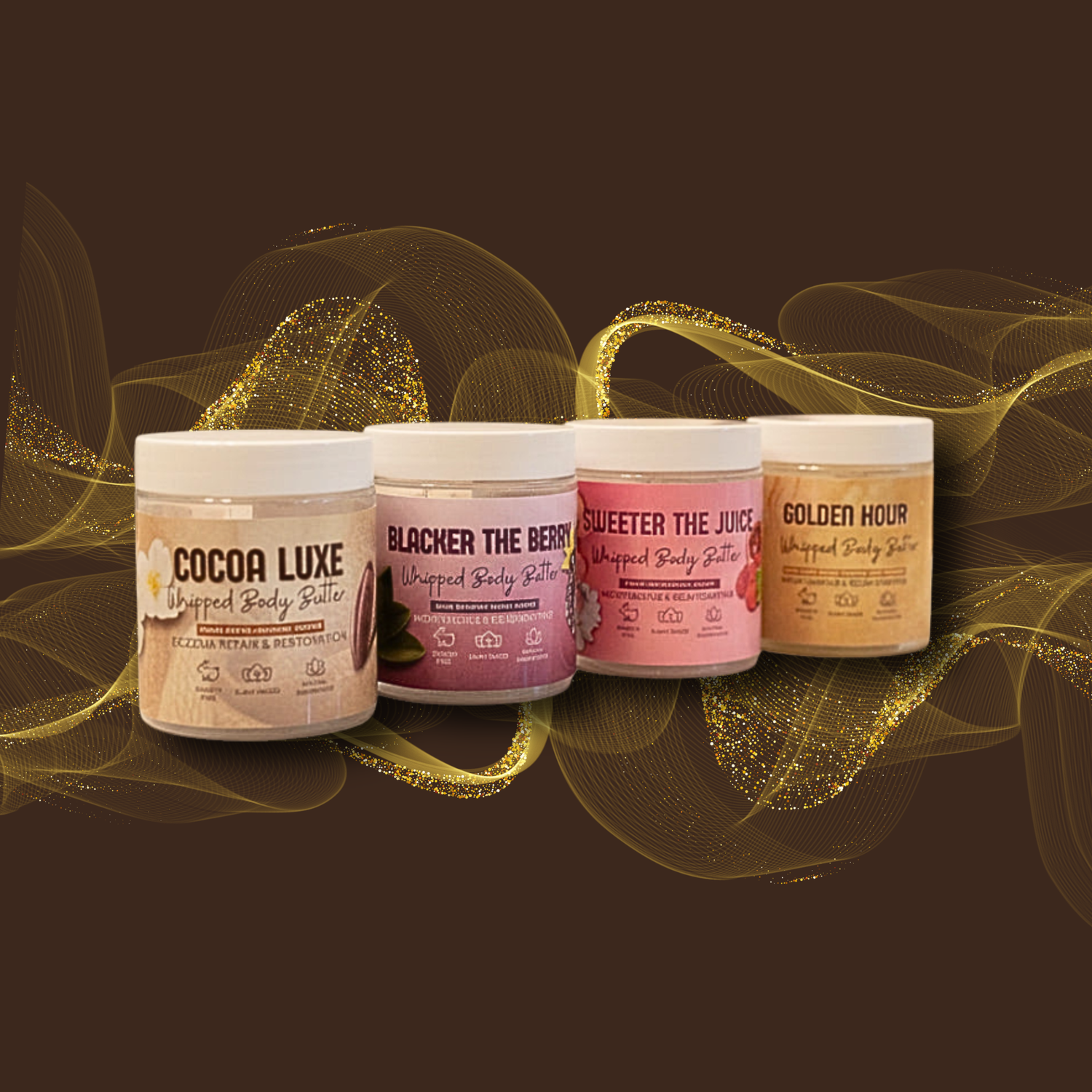 Celebrate the beauty, glow, and confidence of every body with our Melanin Magic Collection. Inspired by culture and crafted for all, these plant-based whipped body butters deliver rich, long-lasting hydration while enveloping your skin in luxurious, irresistible scents. From Cocoa Luxe’s cozy cocoa butter cashmere, to Blacker The Berry’s bold black raspberry vanilla, Sweeter The Juice’s juicy fruity-floral blend, and Golden Hour’s warm golden peach and musk glow — there’s a scent for every mood, every moment, and every skin-loving ritual.